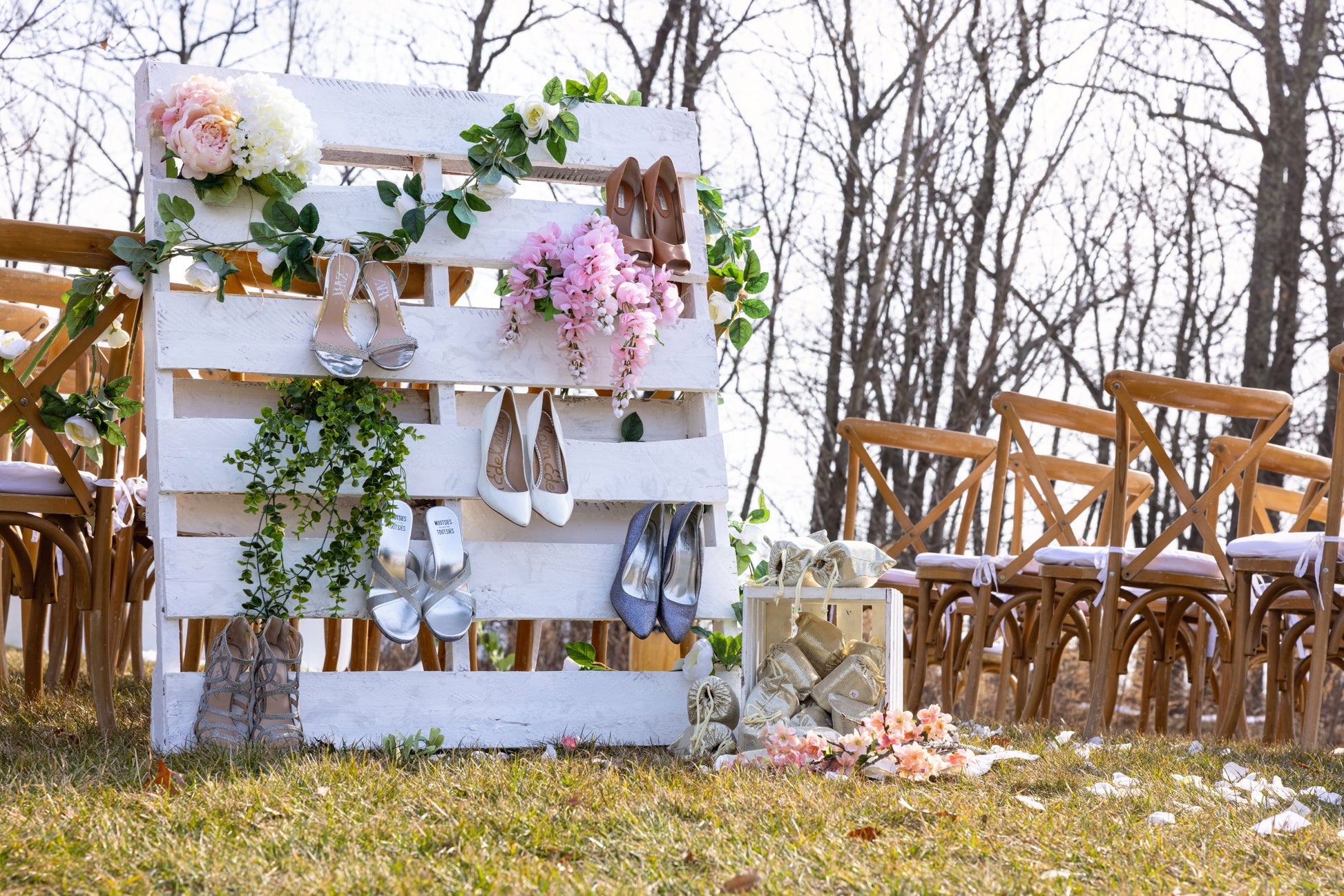 Our Silky Toes Gift Box includes 20 pairs of flats: 5 pairs in sizes 6-7, 10 pairs in sizes 7-8, and 5 pairs in sizes 8-9, along with 20 heel bags. It’s the perfect solution for accommodating all your guests.