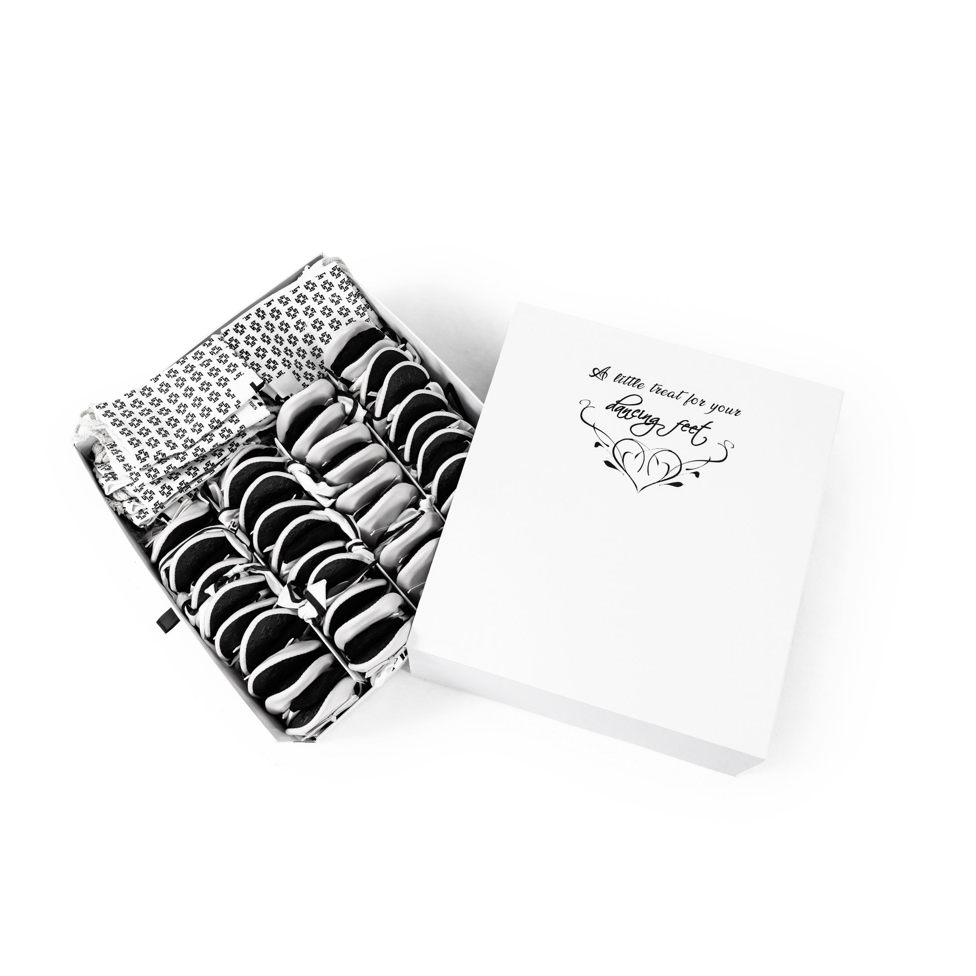 Silky Toes Wedding Box Sets are designed to keep your guests happy and comfortable, allowing them to fully enjoy the celebration and dance the night away at your wedding.