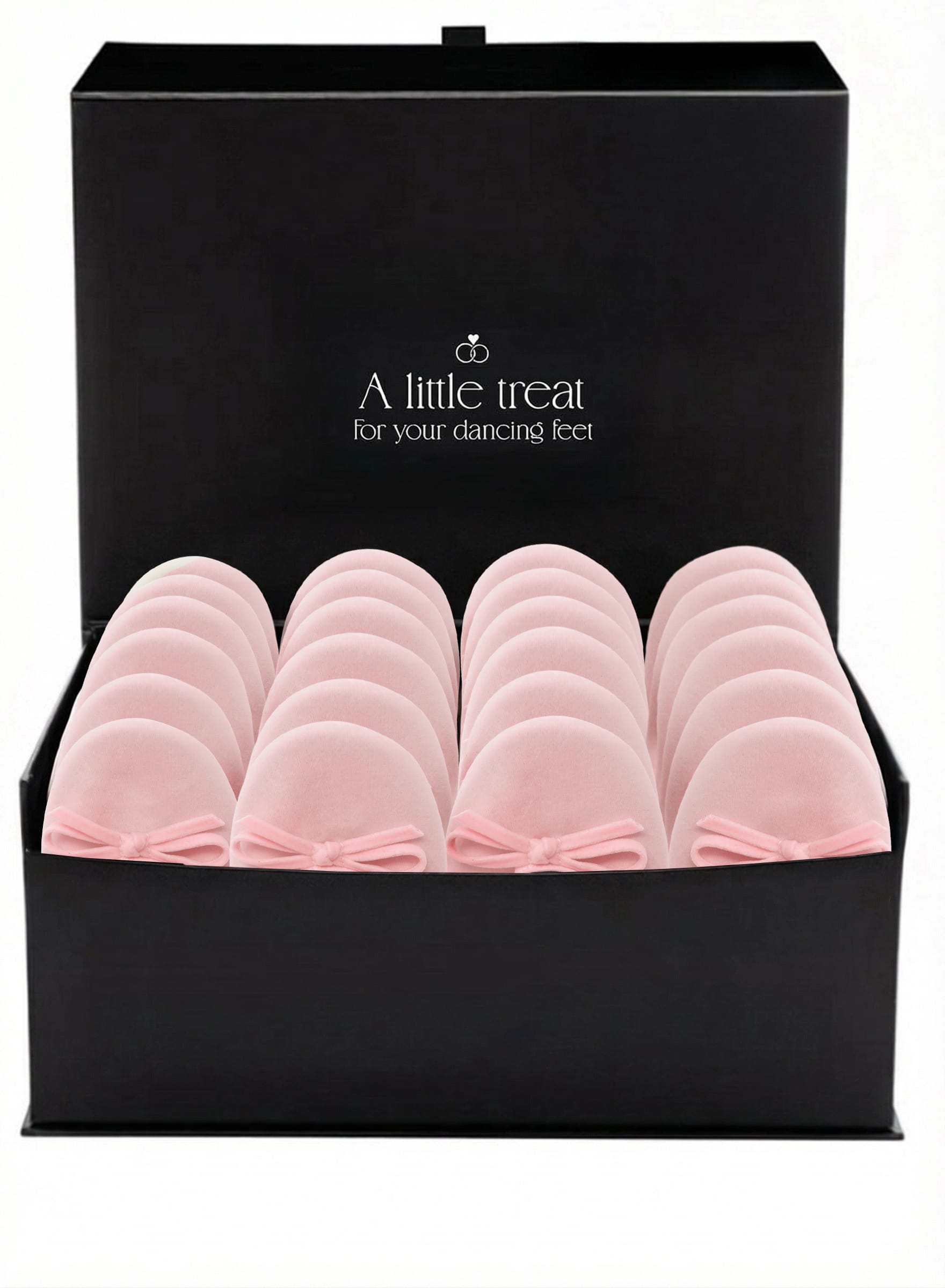 PRE-ORDER Foldable Flats Wedding Box | 20 Pairs of Velvet Ballet Pink Flats in a Black Display Box